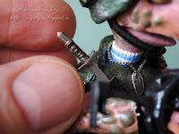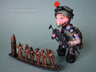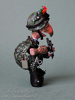 Да ещё и в полной военной амуниции! Танюш, как же мне нравятся ваши минифигурки! Всё продумано до мельчайшей деталечки - восторг! Как всегда с увлечением рассматриваю фото процесса. Очень идёт розочка вашему солдатику! Браво Игорю!!!