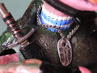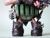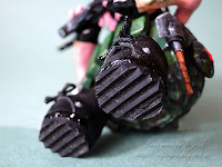 На пузе черепаха разгрузка - эта штука так называется, хотя мне не понятно, почему; скорее это нагрузка!:))) И настоящие берцы на ногах со шнурками, заклёпками и красивым протектором на подошве!