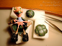 Тело черепаха - полимерная глина на проволочном каркасе. Всё доработано контурами и покрашено.