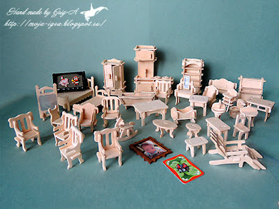 Но это еще не весь подарок! Мы купили ещё набор мебели - 36 предметов - и заставили весь дом))) Тут и набор для гостиной, и для спальни, и детская, и столовая, и даже ванная комната. Знаете, есть люлька, унитаз, стульчик для кормления ребенка и даже лошадка-качалка!!!МебелЕЙ очень много, но уже владелице дома, оказывается, и этого не хватает!:)))