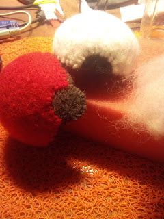 По-хорошему, можно было такую конструкцию свалять "вмокрую", с этого и начиналась моя работа. Однако моя нелюбовь к мокрому валянию, и видимо, не идеально подходящая для этого шерсть, добавили мне хлопот. В результате последний, красный слой я валяла иголкой.