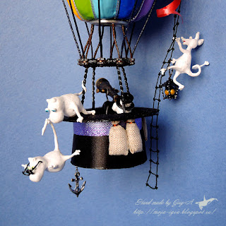 Десятый раз рассматриваю все фотографии, не могу определить, что поразило больше на этот раз: сам шар, шляпа, мешки, верёвочная лестница, крепление шара, якорь, очки - всё потрясает! А потом - БАЦ, Мумики тоже сделаны вручную. Не взяты из готового детского набора, а слеплены с любовью, да ещё у одного в руке хвост другого! Игорь, пора выставляться! Нельзя ограничивать просмотр лишь только посетителями вашей квартиры, люди должны видеть эту миниатюрную красоту!