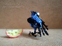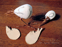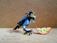 Ворона. Клюв вороны - латунная фольга, голова и туловище - пенопласт, ноги и основа хвоста - медная проволока, крылья - замша, обязательным материалом всех работ Игоря - контуром проведена деталировка.