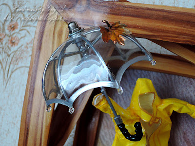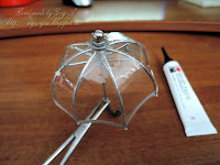 Прозрачный пластик от косметической сумочки натянут на остов зонта. Контуром по стеклу и керамике доделаны детали.