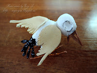 Задний фон - "дождливая" ткань. На ней идет частый осенний дождик.А вот на правой нижней фотографии собраны уже готовые части панношки: зонтик, сапожки, плащ, птичка:)