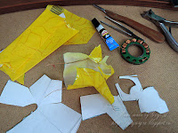 Дождевик вырезан и склеен по эксклюзивным выкройкам от кутюр:))) из желтого "билловского" пластикового пакета и проволочного каркаса,