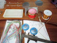 Кроме бобины, при изготовлении барабана Игорь использовал две крышечки от банок детского питания для верха и низа, пластиковую пленку для мембран, шурупчики с петлёй, цветные шнуры, кожаную ленту; палочки выточены из деревянных шпажек для шашлыка. Покрашено всё акриловыми красками и контурами с глитером. Барабан можно использовать в качестве игрушки или елочного украшения.
