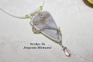 Кулон с нежным флюоритом. Цветение сакуры, дуновение весеннего ветерка, тишина и покой. Созерцание- начальная ступень познания, чувственная форма отражения действительности в сознании. Хотелось создать украшение с ненавязчивыми восточными нотками. Не уверена получилось ли?