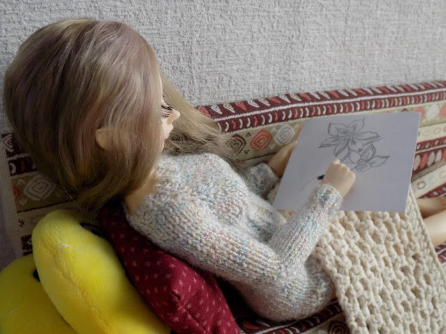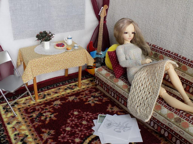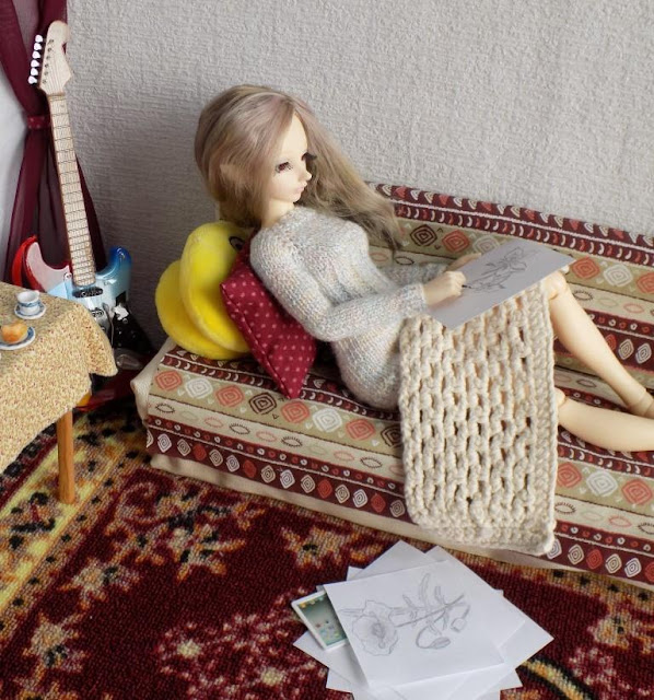 Какая же хорошенькая у Ваших куколок комната! И кофточка у Леи такая уютная, нежная, как сама хозяйка.