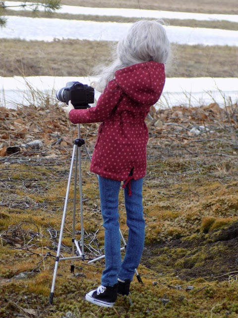 По этому поводу сшила ей парку и джинсы, а также прихватили новый штатив для камеры (правда пока краска сохла, кот успел его погрызть))))
