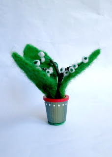 Листья и цветы сваляны из шерсти, в основе стеблей и листков - акриловые нитки для вышивания, флористическая проволока и флористическая лента.