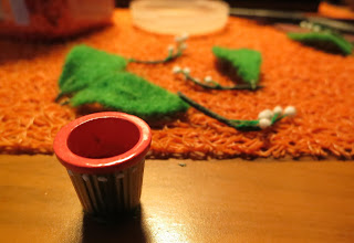 В качестве горшочка взят пластиковый наперсток из детского швейного набора. Я его предварительно загрунтовала, покрасила, засыпала "дренаж" из цветных декоративных камушков.
