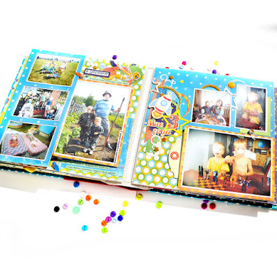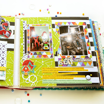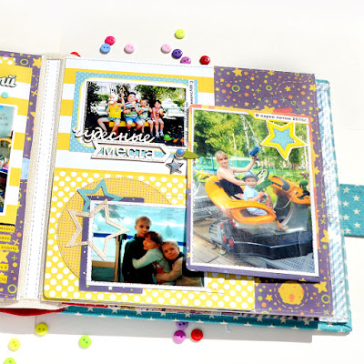 Альбомчик с чужими фото, пришлось реушировать лица, на мой взгляд потерялась красота в этих белых пятнах, но не показать не могу, яркий, детский, заводной)