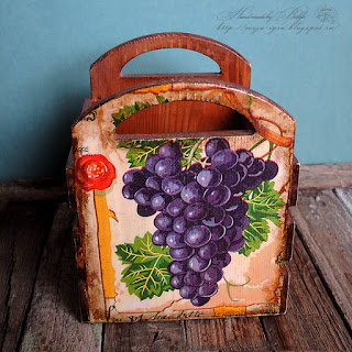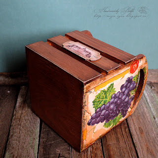 Я таких заготовочки закупила и постепенно оформляю. Вот этот ящичек получился светлый (хотя больше нравятся темные) и виноградный.
