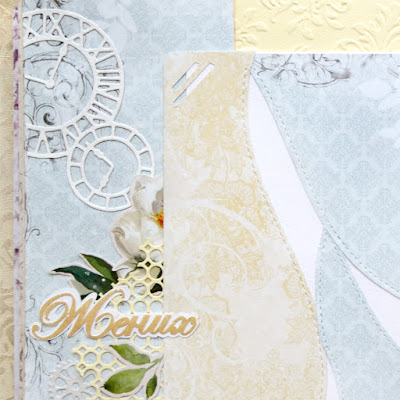 третий разворот для жениха, в фотоальбоме должны были присутствовать пионы, вырезала их из листа "нежный букет" коллекции "Каникулы"