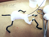 Проволочный каркас обмазывается клеем "Момент - жидкие гвозди", а потом глиной DAS.