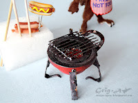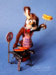 А сейчас несколько фото с процессом создания набора для барбекю: мангал с решеткой и углями, вилка, хот-дог, фартук, знак-плакат и собственно сам наш герой пёс Барбос и необыкновенный... ой... просто пёс Барбос.