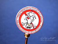 А дорогой наш Барбос, нежно любящий всю живность на нашей большой планете (он даже охотится только с фоторужьем - ловит красивые кадры с разной живностью), а особенно милых и пушистых кошечек, настоял, чтобы дед соорудил ему еще и плакатик с рекламой его бизнеса с одной стороны и о многом говорящей надписью с другой: "Во время приготовления ход-догов ни одна кошка не пострадала" - ну, дедушка и нарисовал, как мог.