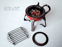 Барбекю сделана из пластмассовой крышки, решетка - из проволоки.