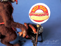 Но чтобы сэкономить денежные средствА, он по собственным чертежам и своими руками из всякой всячины, хранящейся в нашем сарайчике, соорудил милому нашему песику набор для барбекю: саму барбекюшницу, вилку - основной инструмент продавца хот-догов, даже фартук сшил, на котором написал лозунг всей нашей с Барбосом семьи и призыв всем гражданам, особенно корейской национальности: "Dog is friend not food!" Что в вольном переводе на русский язык звучит, как "человек собаке друг"!