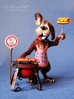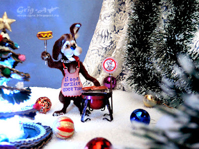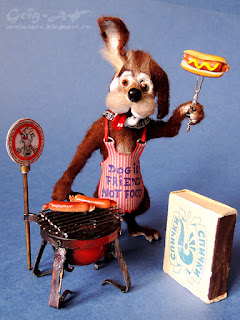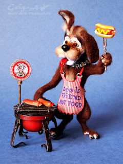 Ой, Танюшенька, как же я люблю читать твои комментарии к работам! Замечательный получился рассказ о жизни и увлечении Барбосика! Красавчиком хотдоггер получился! А сосиски - то какие у него аппетитные, с горчичкой - прям, слюнки потекли!!! Танюш, а уж рассказ о создании Барбосика, проиллюстрированный фотками - восторг!!! Барбекюшница восхитила, как настоящая смотрится!!! А её надпись на фартуке позабавила, ты уж сильно причесала "вольный перевод"