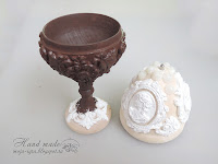 А "лепнину" делаю из того, что под рукою, в зависимости от молда, даже из горячего клея делала. А в этом случае была масса "Ла Долл".