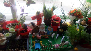 В одной группе была целая деревня "Урожаево", в другой - "Волшебный огород". Воспитанники ясельной группы завели на подоконнике "огород бабушки Лукерьи".