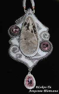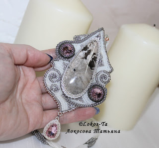 Кулон с нежным,загадочным лунным камнем с замечательной иризацией. Хрустальные розовые кристаллы добавляют нежности, серебряный бисер благородства. Кулон на бисерном жгуте. Жгут длинный 70см