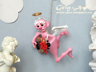 Вот такой замечательно-розовый и удивительно-звучный получился у нас оркестр ангелов. Сделаем еще им общую коробочку для хранения от НГ до НГ - не круглый же год их слушать!Надо будет сюда фото настоящей елки, украшенной оркестром, сюда потом добавить!