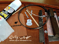 Из процесса производства исключу сегодня самого ангела, ибо в изготовлении его нет никаких особенностей по сравнению с другими оркестрантами. А вот, как супруг творил гитару, покажу подробно.