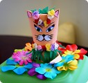 Пусть, например, это будет Кошка, возможно, отдыхавшая на Таити. Юбочку можно склеить из полосок фантиков, из разнообразной бумаги или из ткани.
