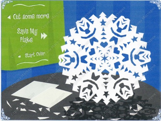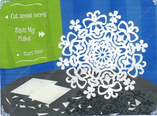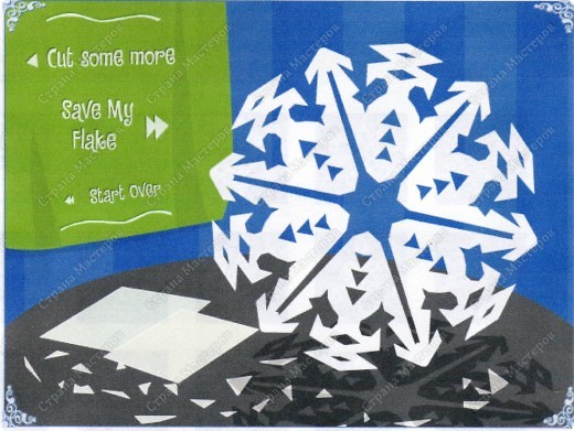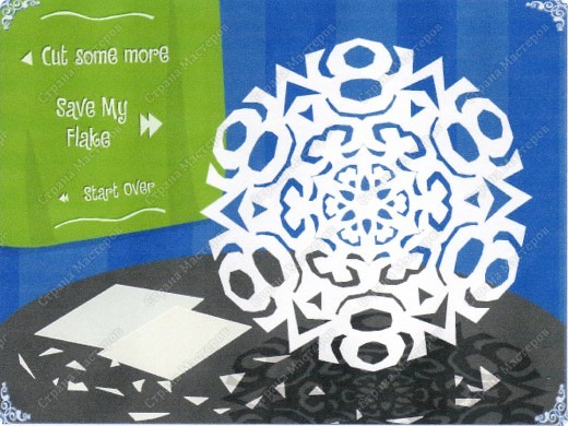 Зайдя на сайт http://snowflakes.barkleyus.com/ , вы сможете увидеть мои вырезки в общей галерее "снежинок", вырезать и добавить свой вариант.