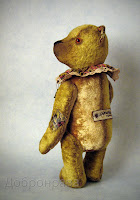 Мишка искусственно состарен и имеет вид пожившей уже игрушки.