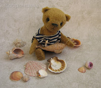 Пузико набито не плотно, я так очень люблю, получается очень приятно тискать такого мишку. Тонирована масляными красками. Глазки из стекла (Германия) Носик - нитки "Штопка"