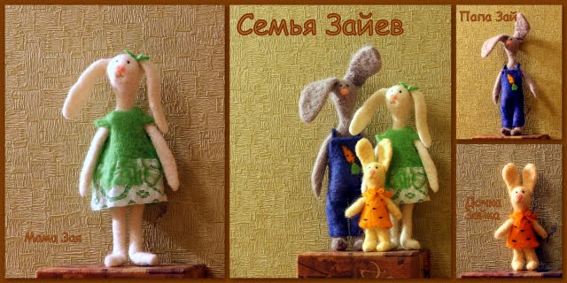 Да вот почему то так подумалось. А у семьи зайцев случайно фамилия не Морковкины? : )))))) Уж такие чудные получились. И сарафан у маленькой и комбез у отца семейства.: )