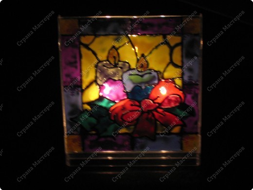Подсвечник "Новогодний" - декорирование коробочки из-под CD-диска витражными красками.
