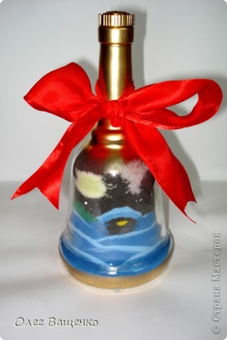 Досыпаем ярко-синей солью бутылку, уплотняем. Растворителем или спиртом нужно смыть следы маркера: