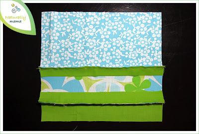 5. Теперь займемся внутренней стороной чехла. Складываем по нижнему срезу верх и подкладку кармана изнанкой внутрь. Припуск на шов подкладки таким образом должен получиться сверху. Складываем его пополам и заутюживаем на лицевую сторону верхней детали. Прострачиваем на машинке.
