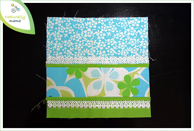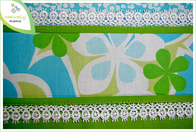 б) Складываем окантовку пополам, огибаем ей срезы. Под сгиб кладем кружево. Я положила его на 2-3мм от сгиба, чтобы не прятать всю красоту под окантовку.