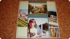 Под фото надписи о людях на фото и событиях. Картинки под фото на подобии писем-марок, т.к. родственники на фото живут далеко и присылают маме фото по почте.