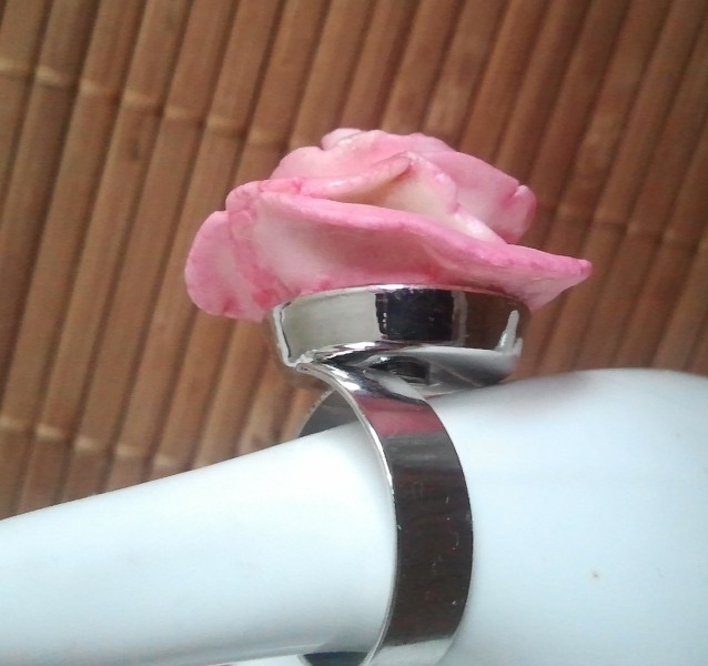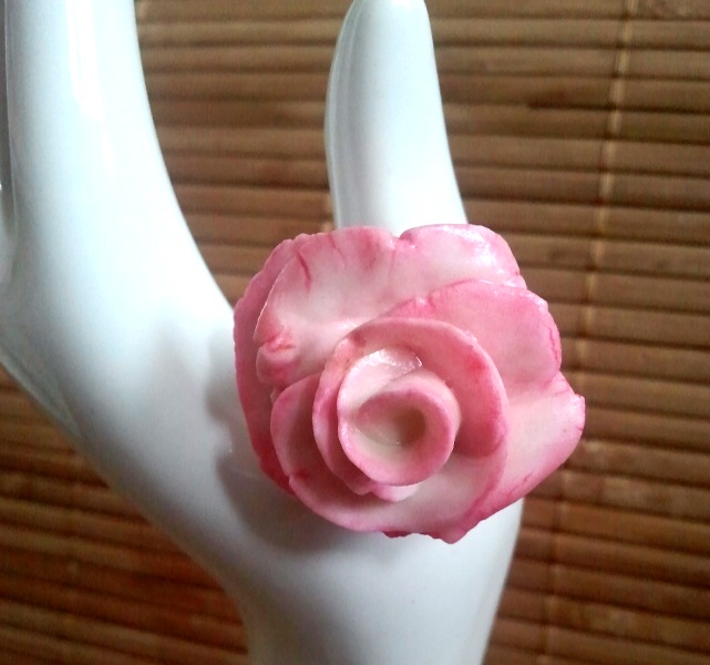 Колечко "Розочка". Основа покупная безразмерная, ХФ, акриловые краски, лак.