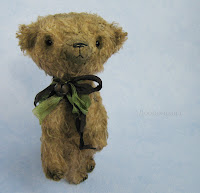 Мохер, стеклянные глазки, опилки, металлический гранулят, 5 шплинтов, масляные краски. Шёлковые американские ленточки и состаренный бубенчик. Рост 17 см. Авторская выкройка. Сшит вручную. Мишка искусственно состарен. Сам на ножках не стоит.