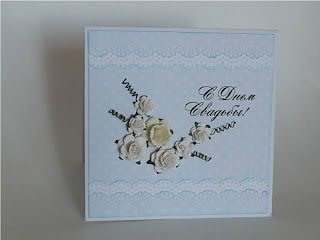 12. Приклеиваем цветы на открытку. Цветы, как и все другие объемные элементы, креплю на горячий клей, используя термопистолет.