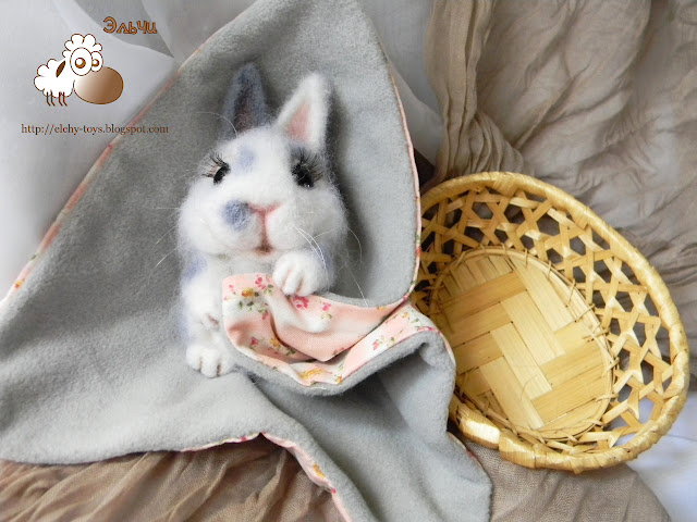 Вот, нежданно-негаданно решила я сделать зайку в корзинке. Вдохновлялась собачкой, которую делала раньше. Но что может быть трогательный милейшей зайки, укутанной в теплое одеялко. К тому же последние дни у нас в городе были достаточно холодными. Прям так и хотелось, как этой зайке, укутаться в теплый плед, чтобы только нос торчал.