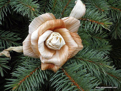 Я уже тоже об этом думала. Хотела позднее сделать с конфетами и выложить в сеть. Кукурузный лист, если его свежий положить сохнуть без початка. при высыхании сжимается в продольном направлении, и становится, как плотная гофрированная бумага. Его только слегка сбрызнуть водой, то можно в нужном месте осторожно растягивать по ширине, точно так. как это делается с гофробумагой для формовки лепестков. А если еще такие розы-конфеты на елку повесить, то это уже будет два ноу-хау сразу, одно из которых -Ваше! Спасибо за развитие идеи!