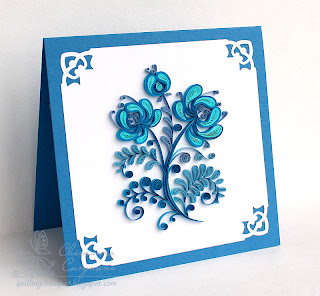 В блоге Хомячок Challenge вышло новое квиллинг-задание - "Росписи и орнаменты". И я сделала открытку по мотивам Гжельской росписи . Открытка не конкурсная, я сделала ее как дизайнер блога.
