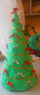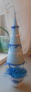 И еще с Алеськой вместе сделали две новогодние елочки)) Вот эта из гофрированной бумаги
