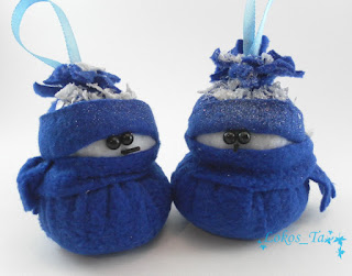 Снеговички маленькие, сувенирные, всего ок. 8см в высоту и в диаметре ок.8см. Они могут быть замечательными елочными игрушками