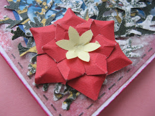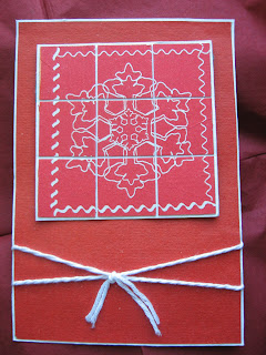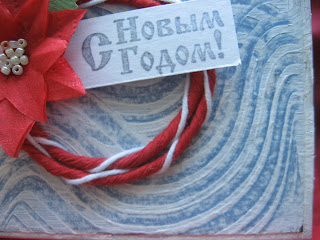 Основа открытки - бумага для пастели, по краю на ней сделала кракелюр, но его почти не видно на фото, фон- тоже бумага для пастели, её покрасила белым акрилом и бумажным гребешком сделала морозные разводы. Веночек свила из салфеточного жгутика и нитки для вязания, получился такой красно-белый, новогодне-рождественский. Пуансетия тоже из салфетки, в срединке бисер.