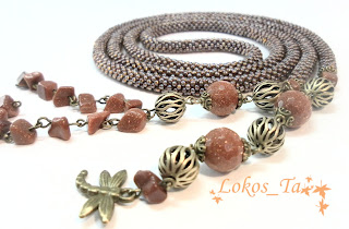 Лариат из бисера теплого темно-янтарного цвета и авантюрина (стекло). Фурнитура под бронзу. Украшение-трансформер. Благодаря своему цвету и необычной форме подойдет к любому образу - и в пир и в мир).